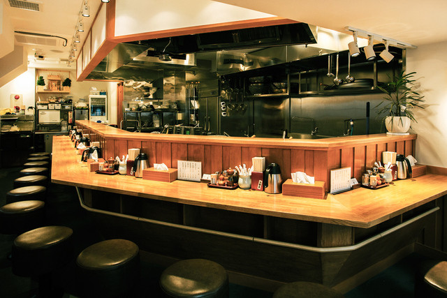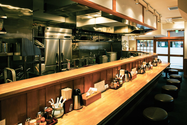 店内は温かな木の質感が主体で、適度に余白のあるレイアウト。カウンターに置かれた胡椒や酢、スープ割りポットまできちんと手...
