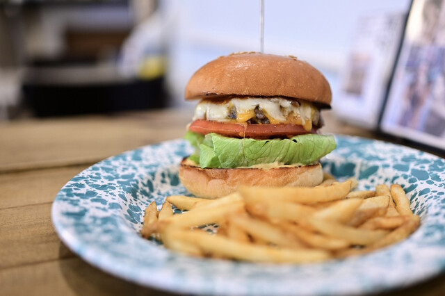 極粗挽きの肉肉しい味わいが堪能できる、牛肉100%のパティを使用した名物のハンバーガーをはじめ、アメリカンテイストの一品料理を多数ご用意しております。