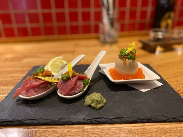 自然派日本酒をワイングラスで!◆日本酒は約60種類常備◆産直の新鮮な魚と和牛を使った創作料理が楽しめる日本酒バルです。2名様~のご予約大歓迎!4〜8名様には、カドの席をご案内できます。10〜20名様には、飲み放題付の宴会プランがおすすめ♪25〜60名様までの貸切も承っております。