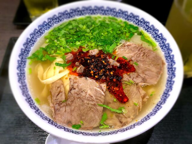 昼に列がありしばらくはこのお店には入れないと思っていたが、夜は列なしですぐに入店できる。入口付近でカウンターがあり蘭州牛肉面880円の一品しかなく、そこにトッピングを選ぶこともでき、三種類の麺から太さを選ぶことができる。私は細麺を選んだ。一品しかないなんて強気だな。今中国式のラーメンが人気とは相当人... 続きを読む»