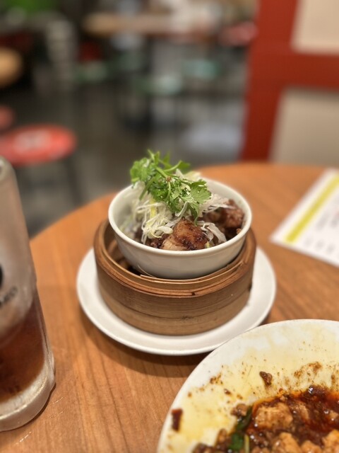 中華系の創作料理が多かったです!辛くないものもあります。瓶ビールが数種類あり、ビール付きとしては嬉しかったです。店内は大衆という感じで、平日ですがサラリーマンで賑わっていました。店員さんの雰囲気が良か...
