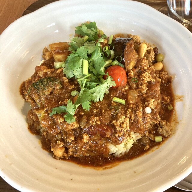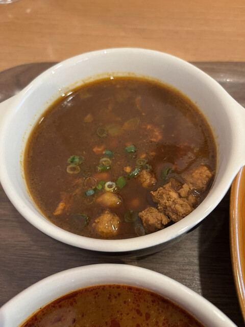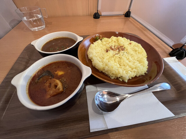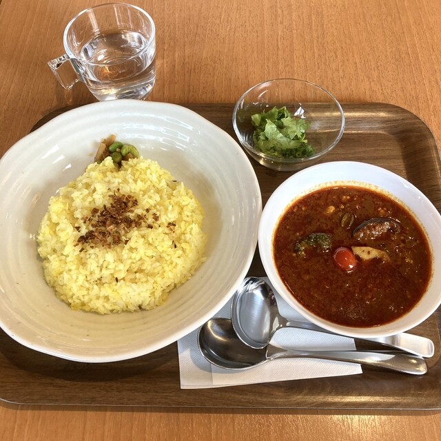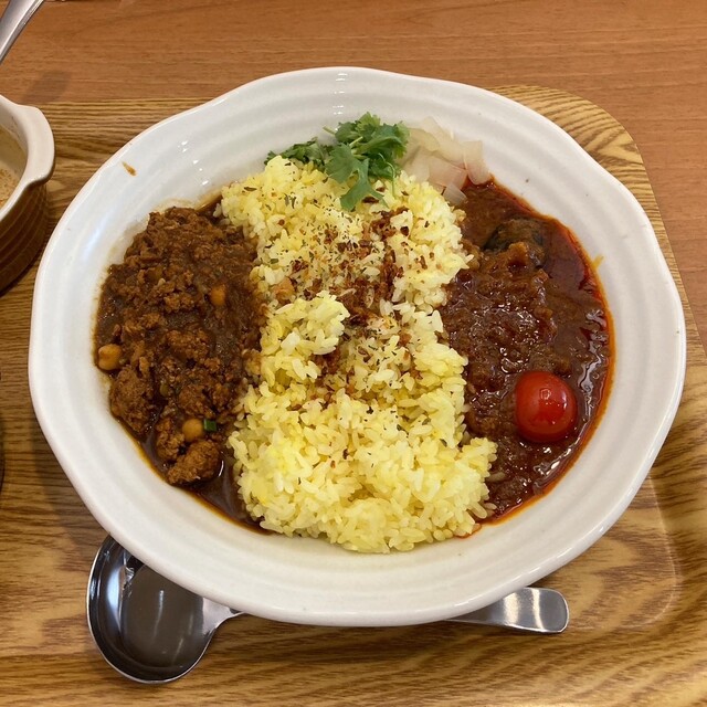 神保町にある「べっぴん舎」の支店。 昼の訪問で先客はほどほどの入り。 あいもりカレー1100円を注文。 べっぴんキーマカリー(辛口)×赤の薬膳野菜カレー(中辛) 辛口は... 詳細を見る