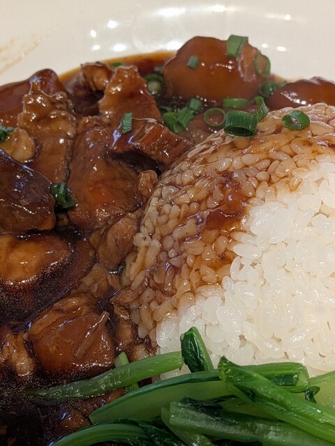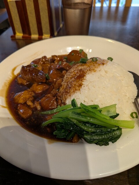 手渡されたランチメニューはどれも美味しそうで目移りしましたが、事前チェックで気になっていた「牛バラと大根のうま煮ご飯とスープ」を初志貫徹でオーダー。すると3分掛からず着膳、素晴らしいスピードです。早速一口頂くと...
