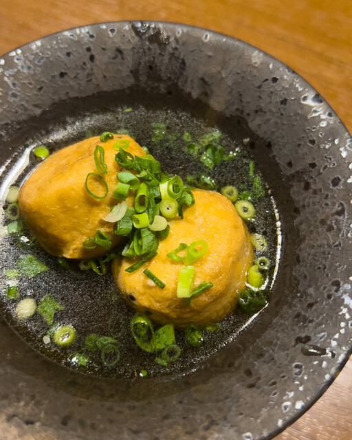 お通し「おでん・ガンモ」から飛ばすなぁ〜!味が染み渡り、口に入れたらジュワーっと出汁が出てくる!濃い味付けで、最初のビールを一気飲み!