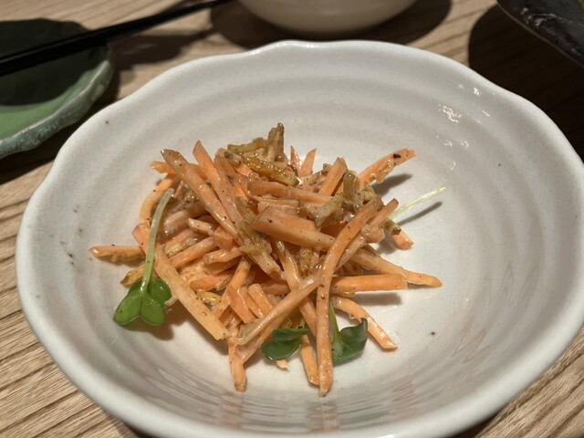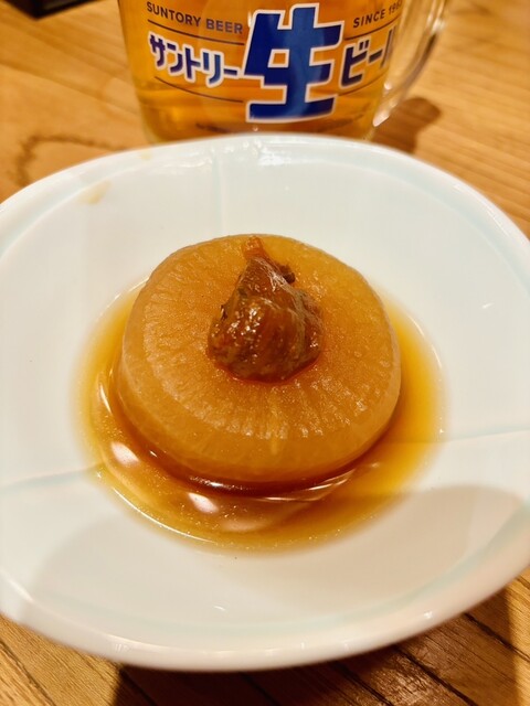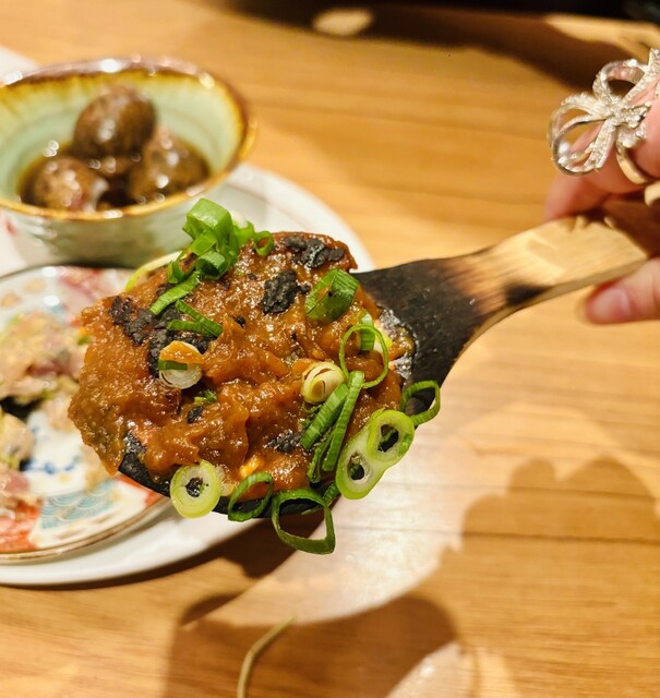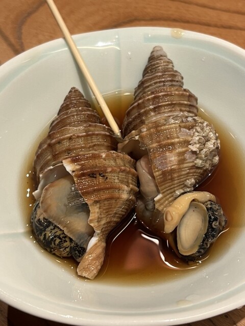 直前電話予約で訪問しました。 夕方の早い時間だったので土日でも静かな店内に入れました。 2人で約¥5,000 お通しは黒バイ貝の旨煮でした! 出汁を吸った貝と、コリ... 詳細を見る