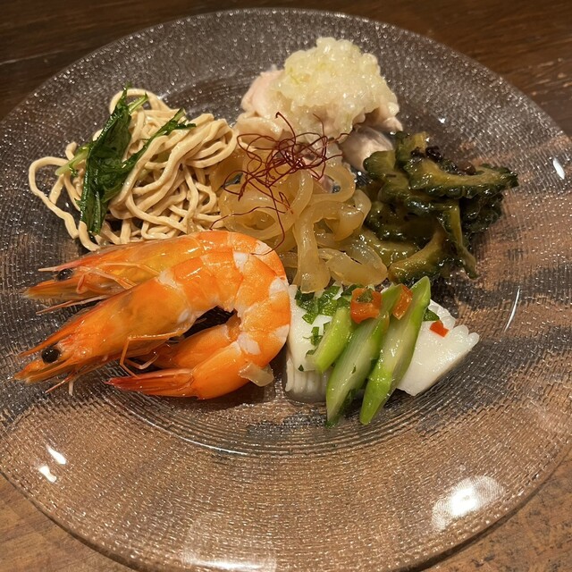 前菜盛り合わせも夏野菜を中華風に調理されており、これまたお酒が進むお味。