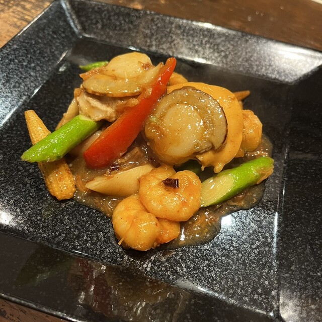 エビかホタテで迷っていたところ、両方ハーフで一緒に炒められるとスタッフさんから素敵なご提案をいただきXO醤炒めを。