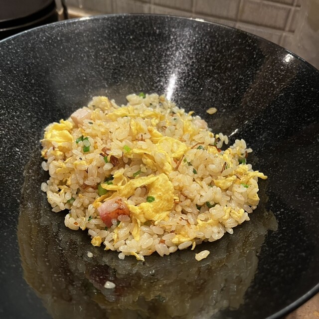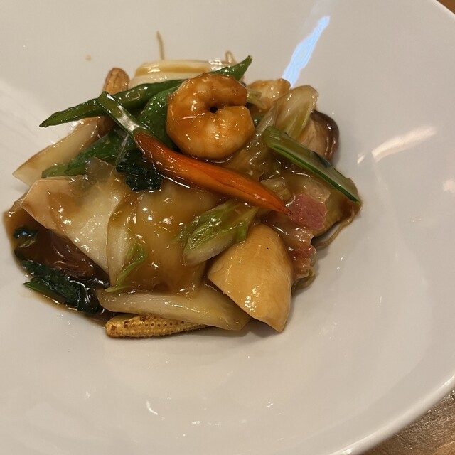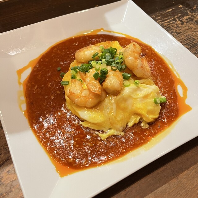 ふわとろ玉子炒めは、口当たりなめらかな玉子、チリソースのバランスが良く、これまた白ワインが止まらない。エビもぷりぷりである。