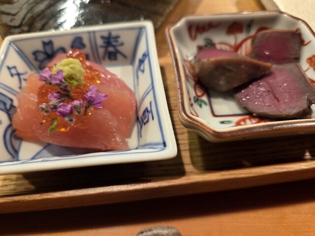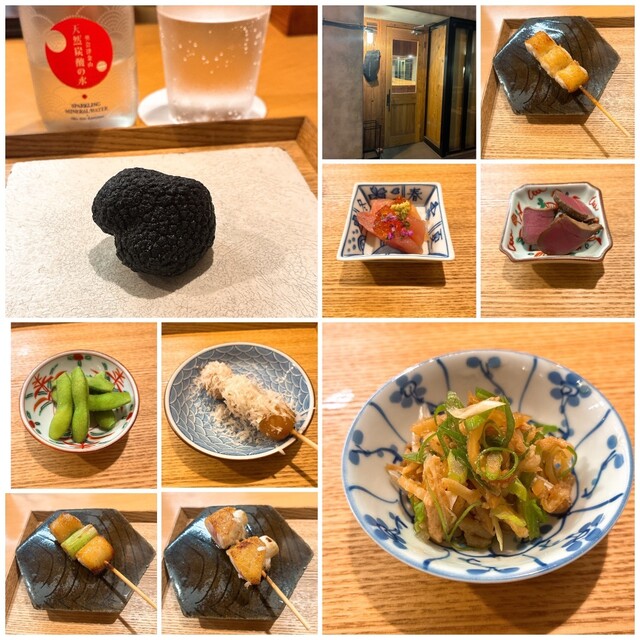 最初はトリュフチョコに包まれたレバームースから始まり、焼き鳥と小鉢...どれも美味しくて圧倒...