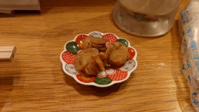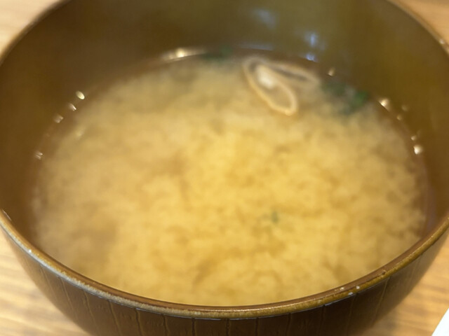 カウンター席に着席して5分で、みそ汁とともに提供でし...
