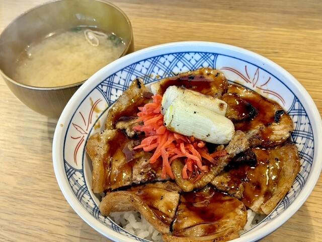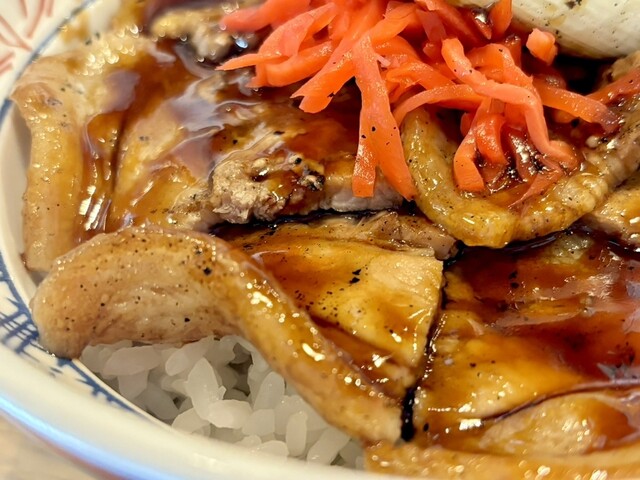 看板メニュー「函館名物 豚丼」は自家製秘伝のタレを絡め、一枚ずつ丁寧に焼き上げた香ばしい豚肉とアツアツの白ご飯とのコンビがたまらない函館のご当地グルメ♪