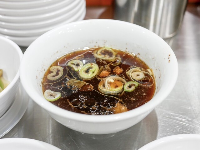 神保町駅から徒歩数分のアクセス良好な立地!外観はオレンジ色の暖簾が目を引く、活気ある佇まいです!以前のお店の看板も一部残っているようですが、「餃子定食専門店」と書かれた暖簾が目印です!!人気店のため、店頭には待ち用の椅子が置かれていることも。列に並ぶ前に店内の食券機で食券を購入するシステムなので要注意です!