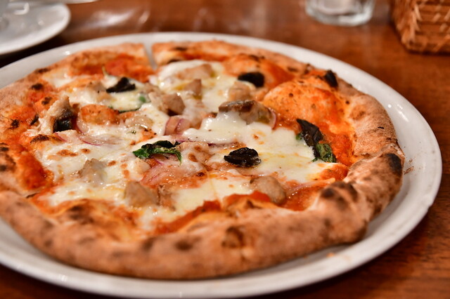 ツナと赤玉葱、ケッパー、オリーブ、サワークリームのトマトソースピッツァ "ロッソ"