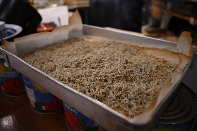 魚介のラグーとホウレン草のアンチョビ風味のアーリオオーリオ スパゲッティ