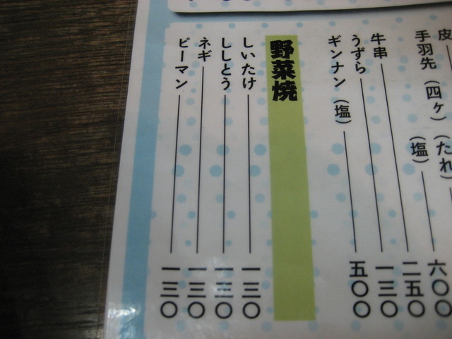 メニュー1 飲み物とお早く出せる物ともつ焼き (by hongo555)
