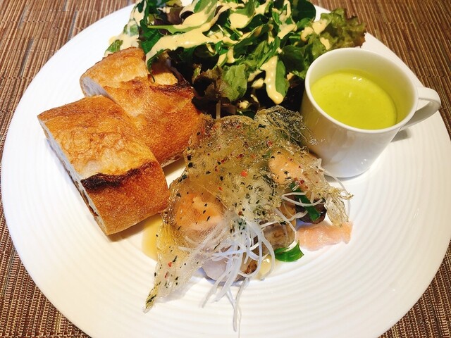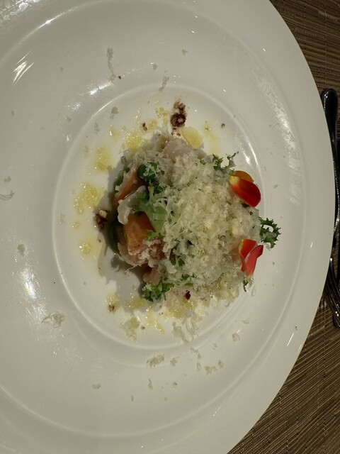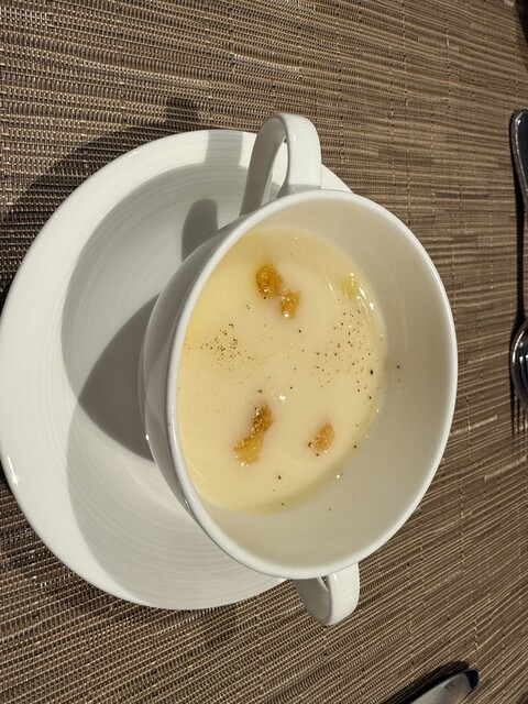 結婚記念日をカメリアの『Saison セゾン』のコースで祝いました。 ①国産茸のコンソメスープ コンテチーズのグジェール 褐色の深い色調が美しいコンソメは、茸由来の旨味を丁寧に抽き出したことが一目で伝わる。液体自体の透明度が高く、雑味や濁りが感じられないため、色は濃くとも仕上げの技術の確か... 詳細を見る