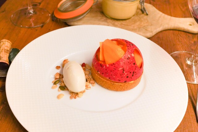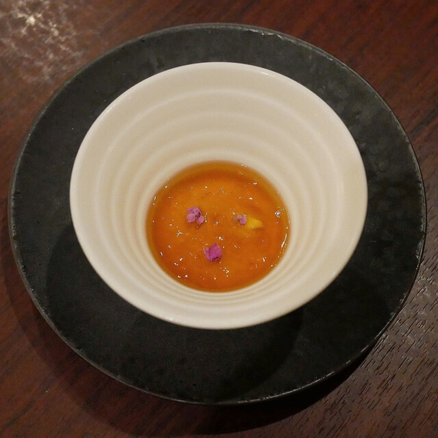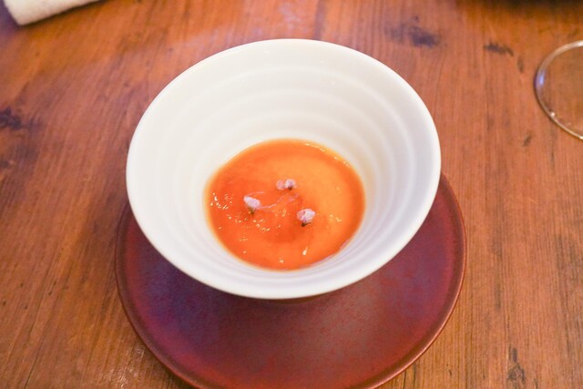 この日のアラカルトは全5皿。まず1皿目は人参ムースのアミ...