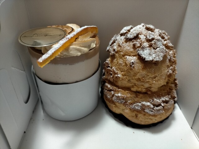今回はキャラメルベースのケーキとシュー、そしてギモーヴを単品で注文しました。