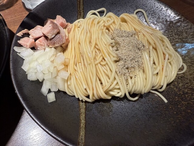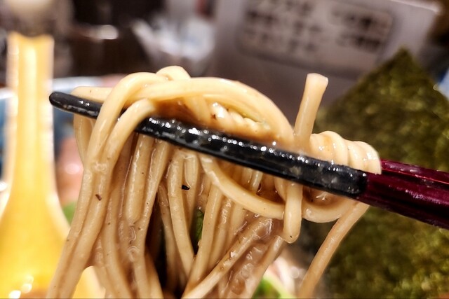 リニューアル後(烏賊煮干が無くなった後)は蒲田の姉妹店である『まほろ芭』と同様、濃厚系は『バカニボ』として提供しています。(海老ニボもあります。)