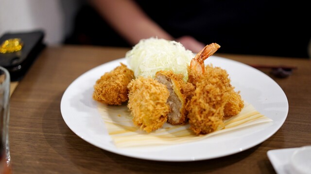 私は、メンチ・ヒレカツ・エビ×2のセットをオーダー。