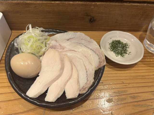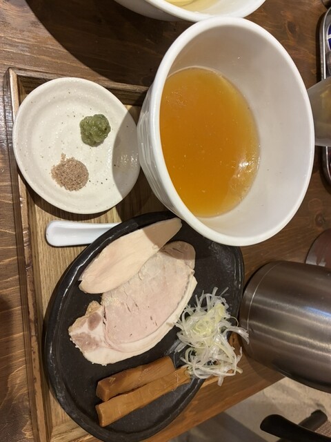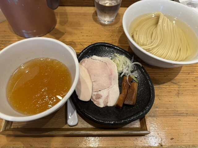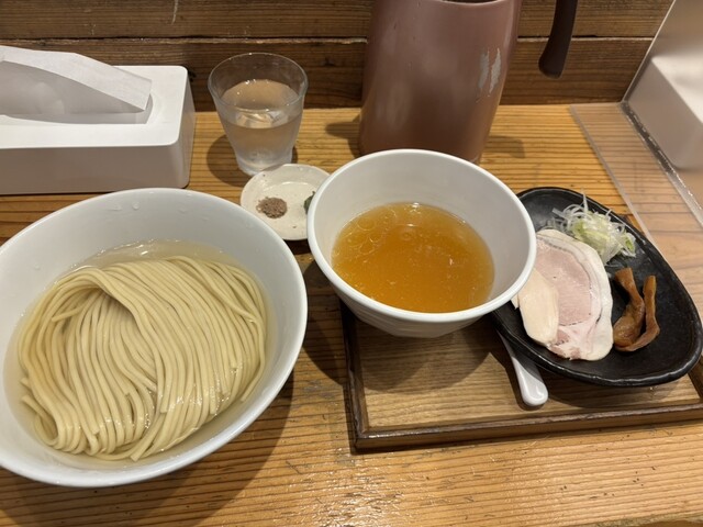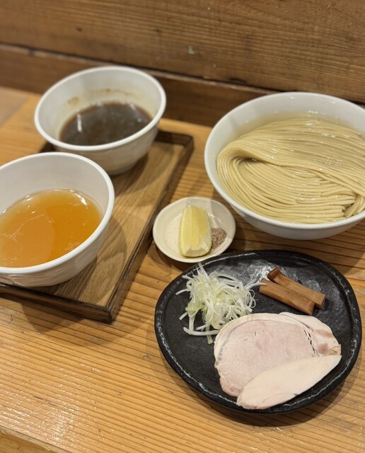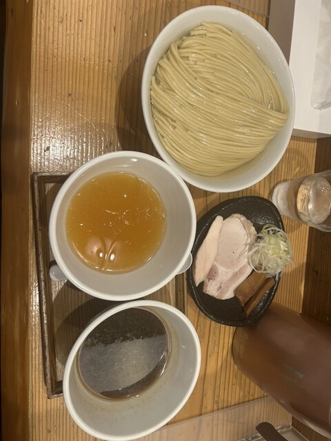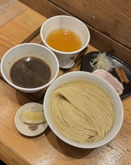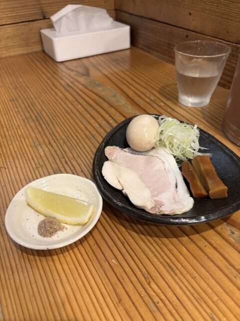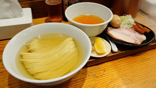 つけ麺 200g 塩(あさり油)+味玉+藻塩+レモン+ビール(中瓶)