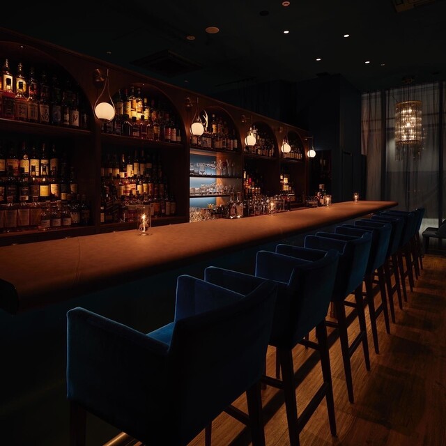 扉を開けると、おしゃれなカウンター席が目に付く大人のためのバー