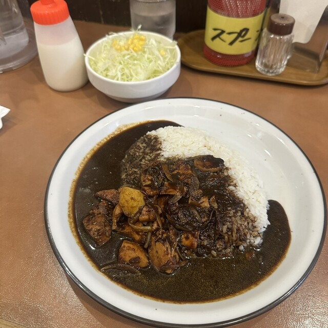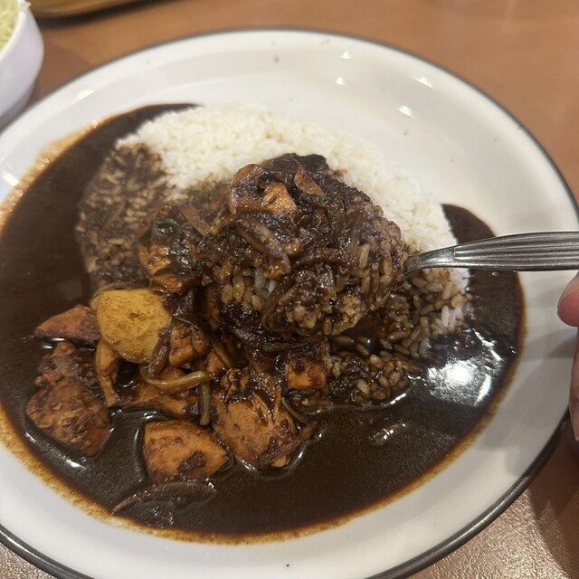日曜日のお昼。カウンターは7割の入り。こちらのお店に来たのは1年ぶりです。 ブラックチキンカレー(850円)、カレールー大盛(200円)、コールスロー(100円)をオーダー。2年前の自身のコメントをみると、同じ価格でした。インフレが続く環境下でも価格据え置きいただいており、頭が下がります。 ... 詳細を見る