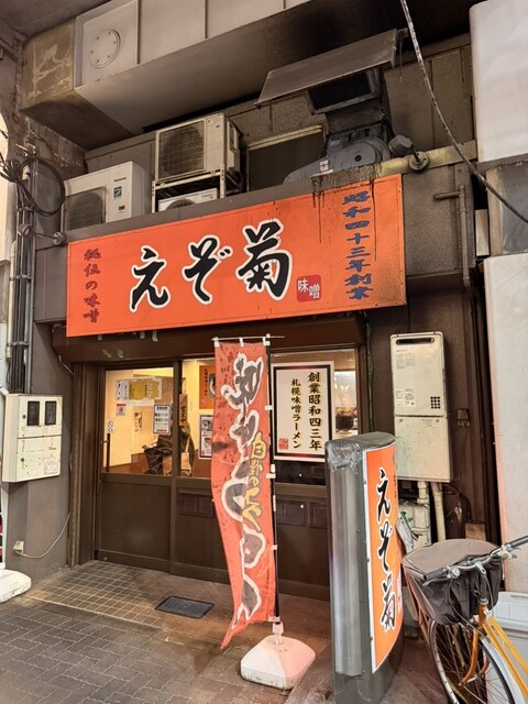 JR御徒町駅南口下車。パンダ広場を右手に南へアキバ方面に戻る感じで徒歩数十秒。 年季の入ってたガード下に「えぞ菊 御徒町店」さんはある。 「昭和43年(1968年)」創業と謳っているが、私と歳が近い。 なんちゃって昭和な雰囲気を醸し出すハリボテのラーメン屋と違う ガチの昭和「札幌味噌ラーメン... 詳細を見る