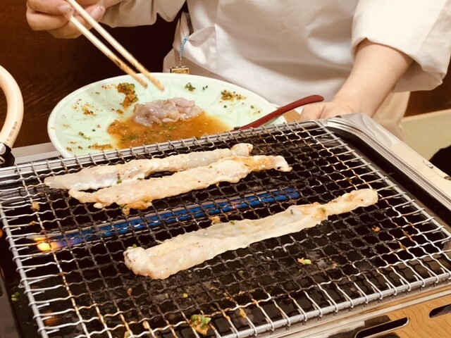 「焼き河豚」は店員さんがその場で焼いてくれます。