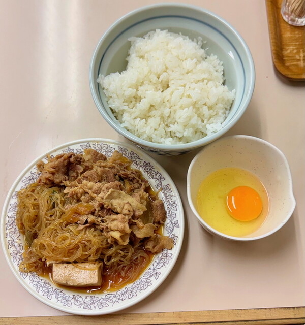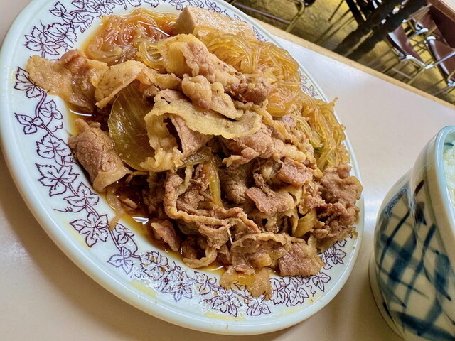 程よい甘辛さの割り下で煮込まれた牛肉と玉ねぎ。ご飯に...