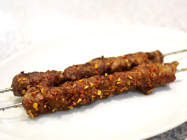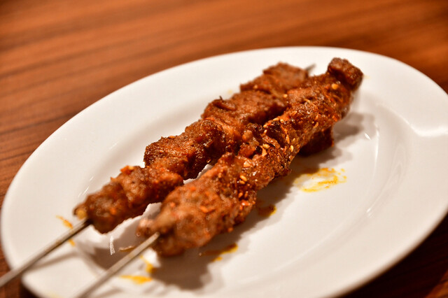名物☆羊肉串。香辛料が効いたスパイシーな味わいが後引きます!