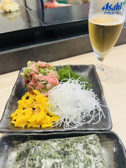 昼から呑みを楽しんでいる方も多そうな店内。我々も、ビール&お通しとトロたくからいただきます。この日のお通しは白魚、その美味しさで良い店を見つけた!と思...