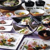 季節のお造り盛合せや若姫牛炭火焼 伊勢海老の雲丹味噌焼きなど豪華食材をたっぷりと味わえる会食。 ※3名様以上のご利用不可 ※お時間90分、20分前ラストオーダー ※お料理のみ6500円