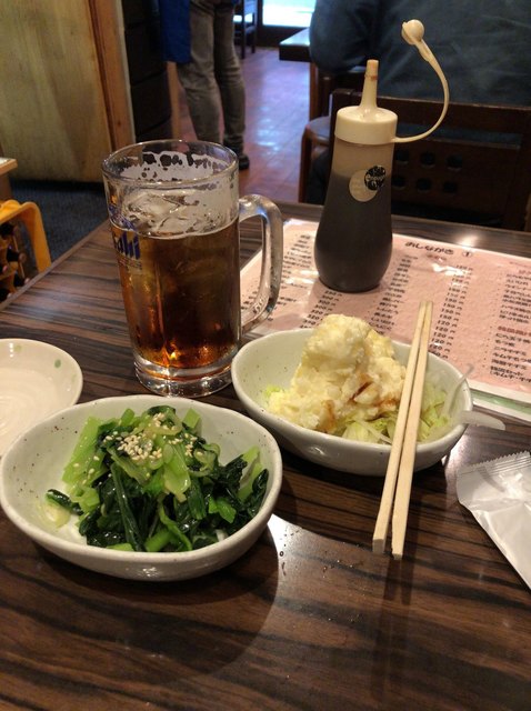 どれも安いのでいろんな種類のお酒を飲みたい人はお金気にしなく飲めるね。1品料理も170円からと激安。そしてここは串もたくさんありました。タレを頼みましたが、少し甘めの甘辛いタレの感じがお酒に合いました。