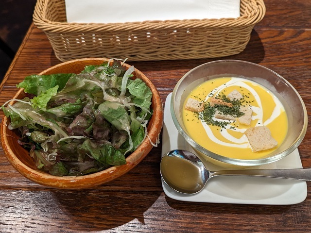 Bセットは、ライス、サラダ、パンプキンポタージュのセット。