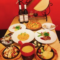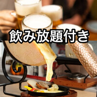 ★2時間飲み放題付★ 3ヶ国から選べるのラクレットチーズを堪能できます♪前菜やお肉料理そして、パスタかピザが選べます。ラクレットを気軽にお召し上がりください。