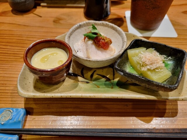 友人と2名で食事。 コースを予約しておいた。 【前菜 3種】 豆乳スープ 鶏胸肉の和えもの ポテトサラダ どれもレベルが高い。胃袋にエンジンがかかる。 【パテ... 詳細を見る