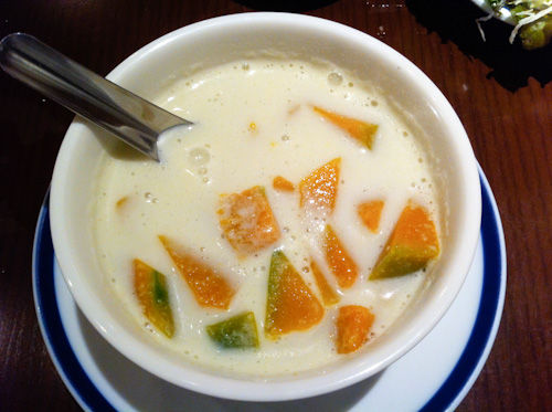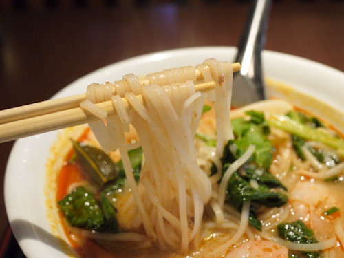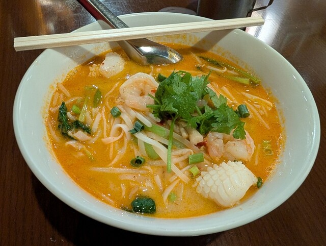 1350円 麺は米粉のフォーみたいな平の麺。残念だったのは、一部固まってるところもあったり。鍋にしっかり沈んでなかったのね…。 酸っぱ辛いスープは美味。小松菜、パクチーもたっぷ... 詳細を見る