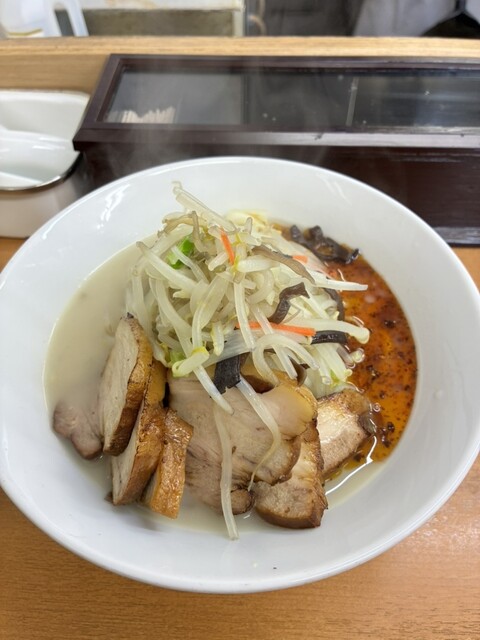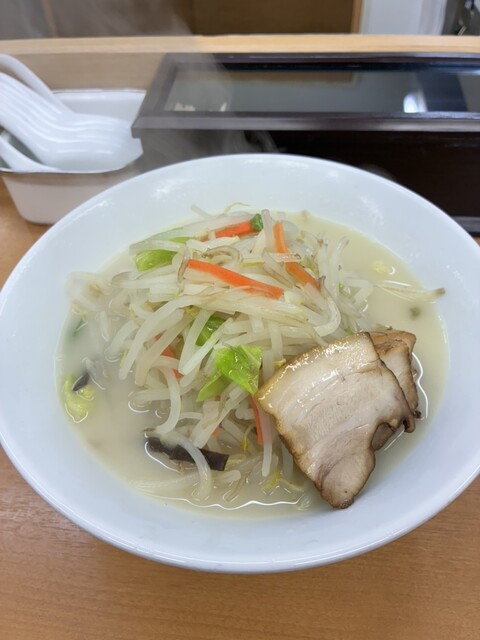 13:23 富白に到着。 鶏ぶた塩タンメン 950円を注文。 麺は、味噌ラーメンで使われるような角の立った中太ちぢれ麺。 ボソボソした小麦感の強いもので、しっかり粉の味がして美味しかった。 スープは、優しいものの輪郭のハッキリした鶏ガラと野菜の旨みが凝縮したもの。 ... 詳細を見る