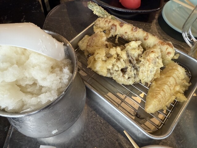 飲みながらメニューを拝見し 先ずは天ぷらをと