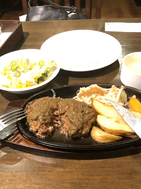 ■オーダー 300gハンバーグ ペッパー Aセットご飯大盛り ■感想 21時過ぎぐらいに来店 店内は自分たち以外には1組ほど 注文して10分ぐらいで到着 ご飯大盛りは想像の1.5倍くらいでかい(写真撮っておけば良かった) ハンバーグもミディアムレアがいい仕事してる、やっぱり美味い... 詳細を見る