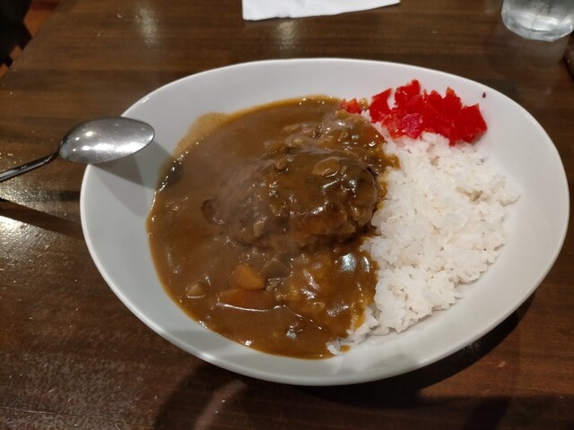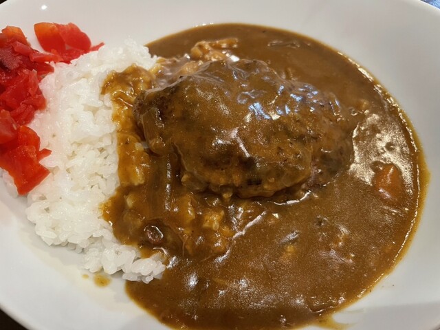 コチラのカレーは和牛のスジ肉をじっくりコトコト煮込んだ濃厚カレーとのことで、ハンバーグカレーに決めました(ノ≧∀≦)ノ