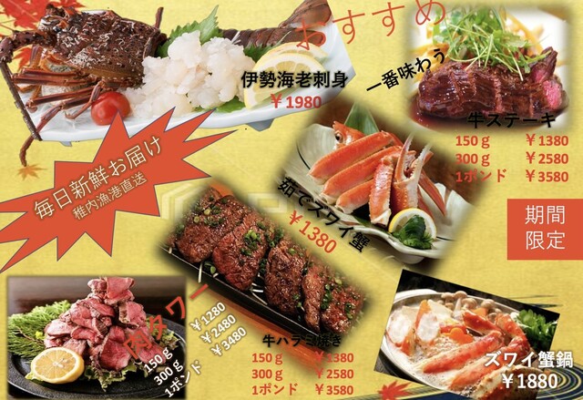 | ジャンル | 居酒屋、海鮮、中華料理 |
