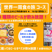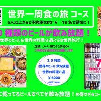 【世界のクラフトビール 約70種類が全部飲み放題!】 ゆっくりの2.5時間★世界のいろんな国の料理がずらりと お腹いっぱいな食の旅!