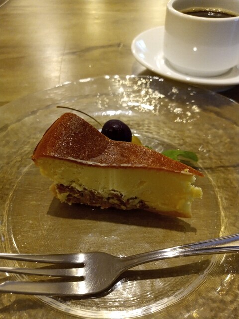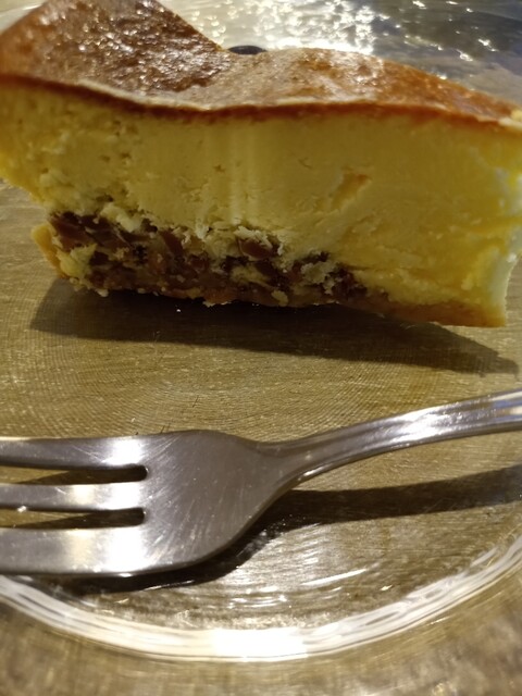 チーズケーキは濃厚でとても私好み。下はアーモンドかもしれません。細かく砕いたナッツが敷いてあり、とろけるチーズケーキとナッツの食感がマッチしていました。