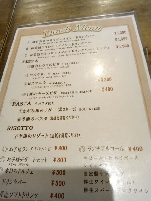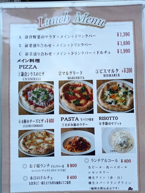 私はピザを選びました。ピザは更に4種類あり選べます。どれも食べたくて悩んだ結果、やはりせっかく来たのだから、鎌倉しらすピザを選びました。