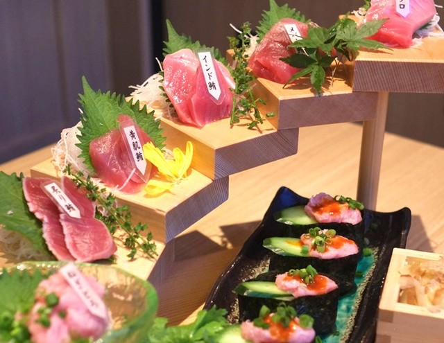 当店自慢の三崎鮪をふんだんに♪贅沢肉鮪刺し盛り合わせから〆にはローストビーフと炙り鮪のひつまぶし風がついた期間限定メニュー♪ 【コース料金】 ■Aプラン生ビール無⇒5000円(税込)■Bプラン生ビール付⇒5300円(税込)■Cプランプレミアム⇒5600円(税込) ※2名様でご利用時、お1人様につき+550円かかります。 ※金曜日は2時間制&通常料金(5500円)でのご案内となります。