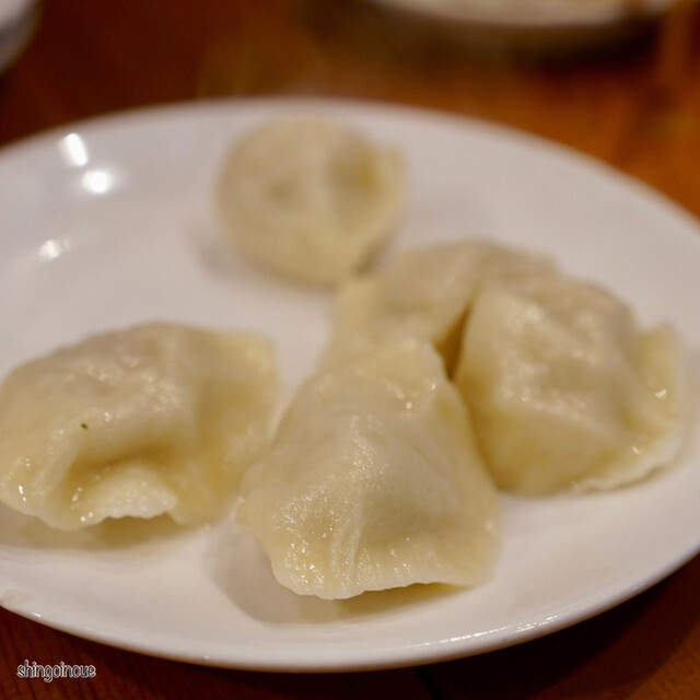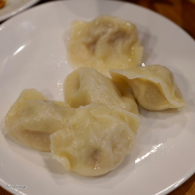 前回、気に入って再訪。羊の串焼き、水餃子、羊肉麺とチャーハン、ワインをグラスで赤・白で注文。ここは中華にしては珍しくワインが豊富。