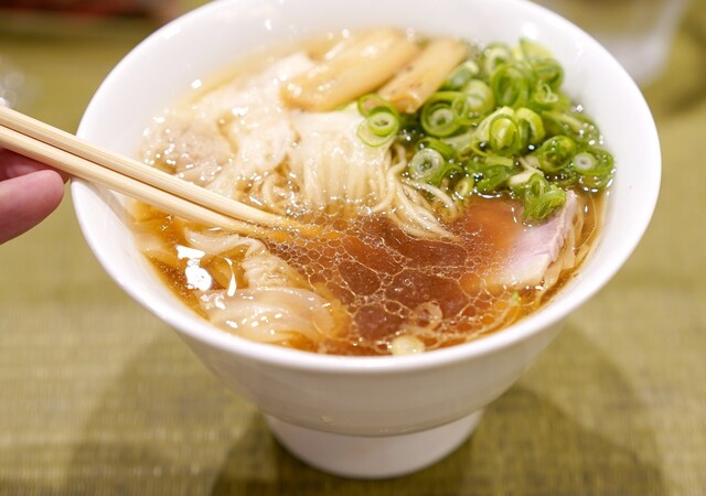御徒町の駅から2分ほどの好立地、平日の夕方に 来店。並びは8人ほど。その多くはアジアからの 旅行者で占めていた。 まず店の前の自動販売機でチケットを購入、 しょうゆラーメン普通(1080円)と飲める親子丼(420円) 足して1500円也。この店の経営者は客の心理を よくわかっているなぁ... 詳細を見る