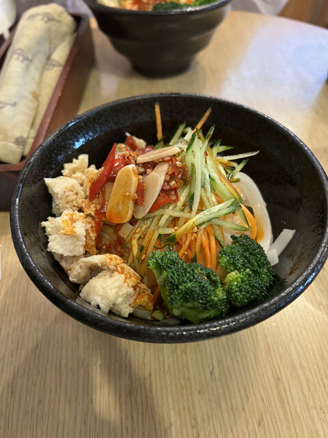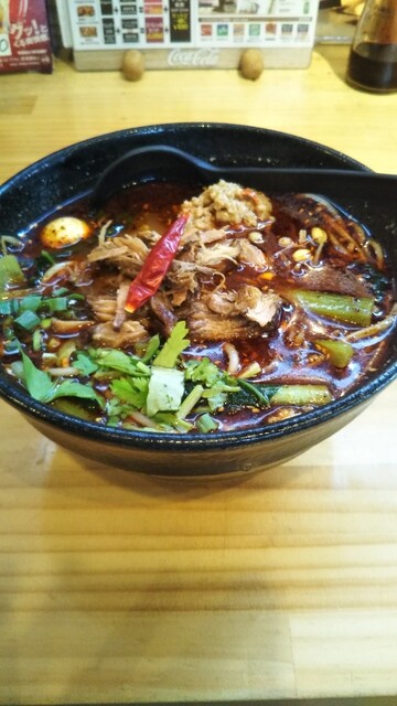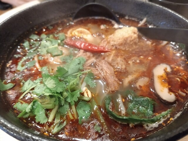 写真の麺は大盛りです。 お米でできた麺とハンバーガーを出すお店です。 麺は辛さが4段階くらいから選ぶことができ、小辛でこのくらいの辣油です。 中国の方が多く来店しており、... 詳細を見る